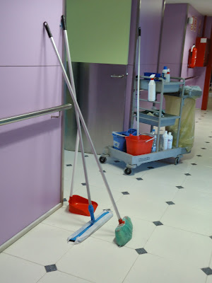 En un hospital se vive una rutina continua, los despiertan 2 veces en la noche (a la misma hora... las 00 y las 06), los levantan entre las 09 y las 10 (depende la habitación por la que empiecen ese día), el desayuno será a las 09.00, con las pastillas correspondientes. A las 13.00 pinchazo para revisar los niveles de glucemia, a las 13.30 la comida y más medicamentos. Sobre las 17 les llevan un yogur, un zumo o una infusión, a las 19.30 la cena y el resto de medicinas... un día, otro, otro y otro de lunes a domingo. A los niños los visitan payasos, jugadores de fútbol, artistas... a los abuelos, si tienen suerte, los visitamos los nietos, si no... ni tan siquiera eso. Triste, pero real.