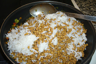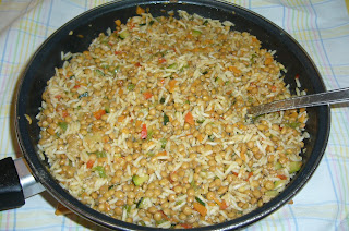 Y como estaba inspirada, puse a cocer mientras miraba el correo en el pc 4 puñaditos de arroz basmati (que se cuece en 10 minutos y no hay que esperar mucho).