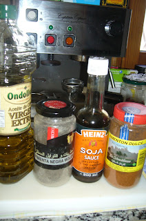 Aceite de oliva, pimienta negra molida, salsa de soja y pimenton dulce cáscara.