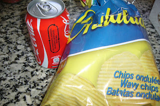 Y como ya dije que no estaban ni los papas, ni la yaya, ni la tita... aunque lo que tocaba para acompañar este plato taaaaan rico y saludable hubiera sido una ensaladita, pues preferimos acompañarlos con coscacola y patatas fritas onduladas (ñaam ñam ñam ñam).