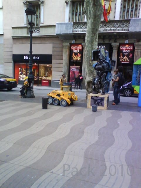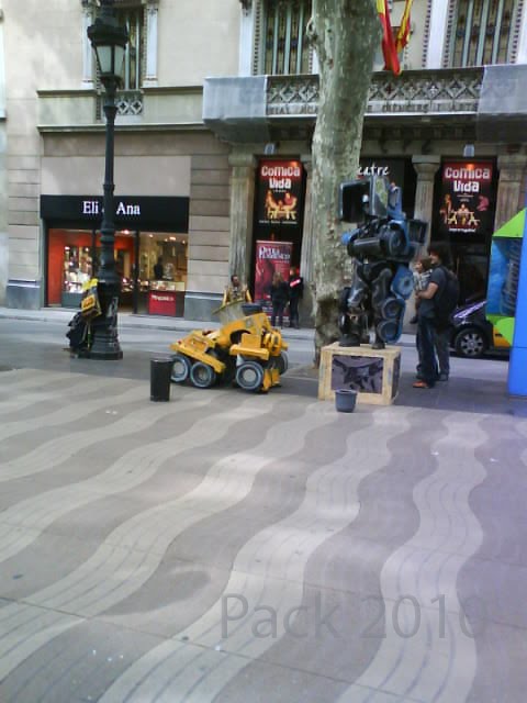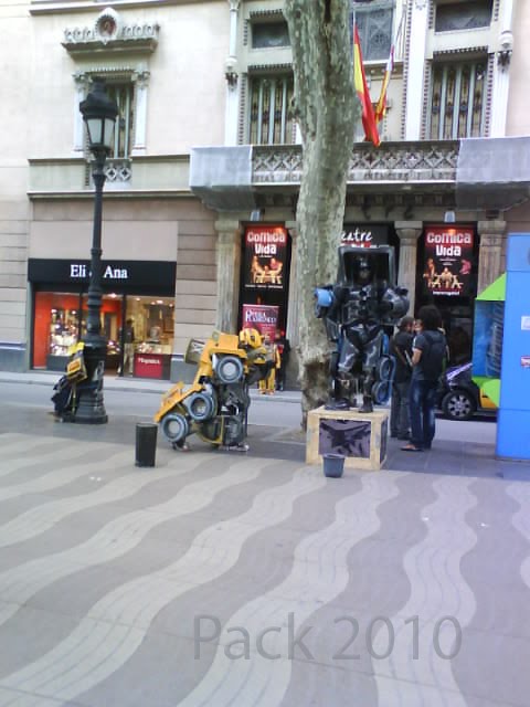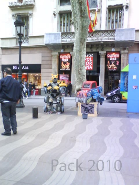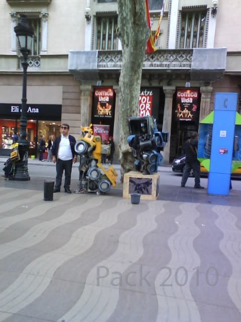 Pues lo que pasa cuando vas por Barcelona y especialmente por las Ramblas, que aparte del agobio del mogollón de gente que hay, te puedes encontrar cosas como esta... 2 transformes, muy currados.